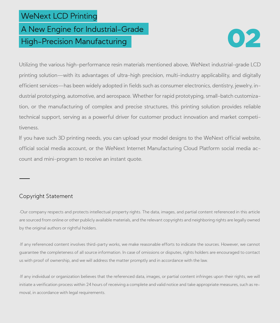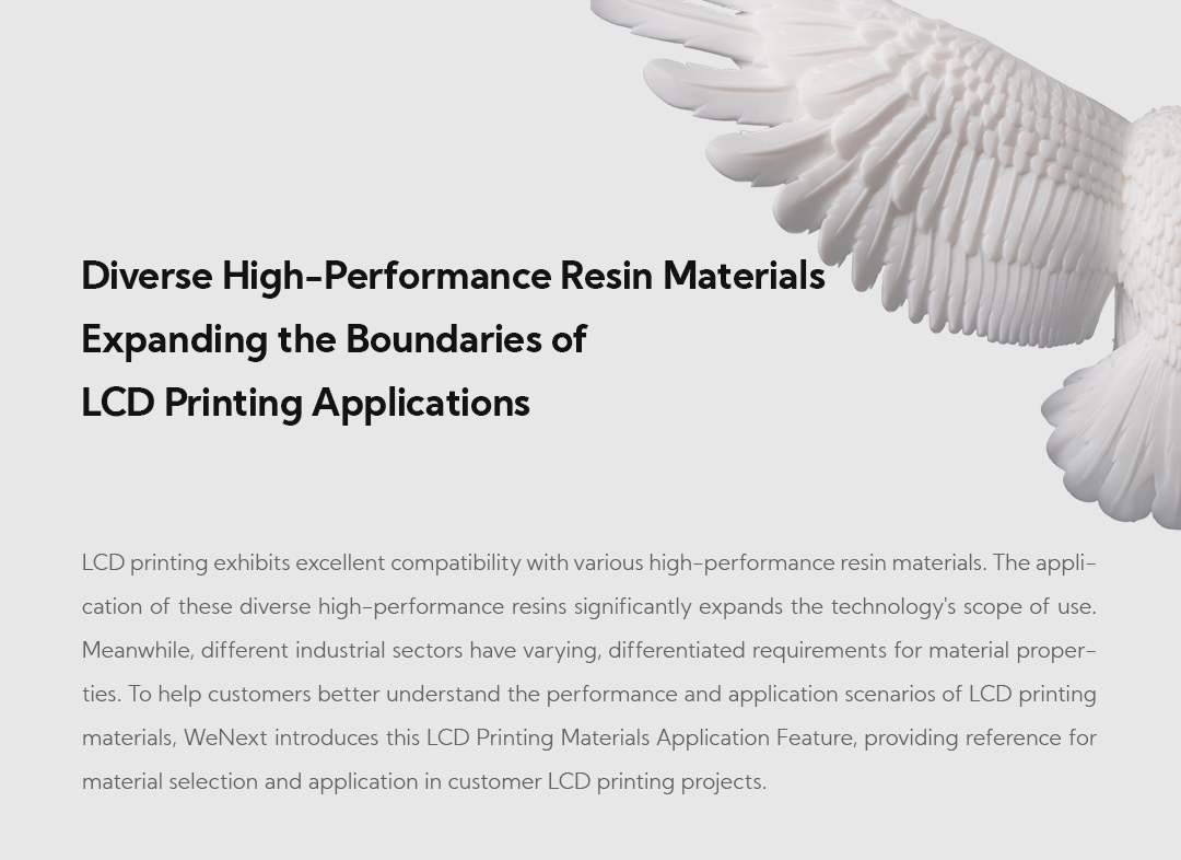 Wenext launches an LCD printing materials application feature, interpreting the unique properties of diverse high-performance printing materials to provide reference for customers in material selection and application for LCD printing.