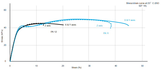 PA11 performs better in ductility, impact strength, wear resistance, and fatigue resistance.